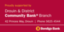 Drouin Hawks Netball Club would like to thank the Drouin & District Community Bank Branch of Bendigo Bank for their sponsorship and ongoing support.